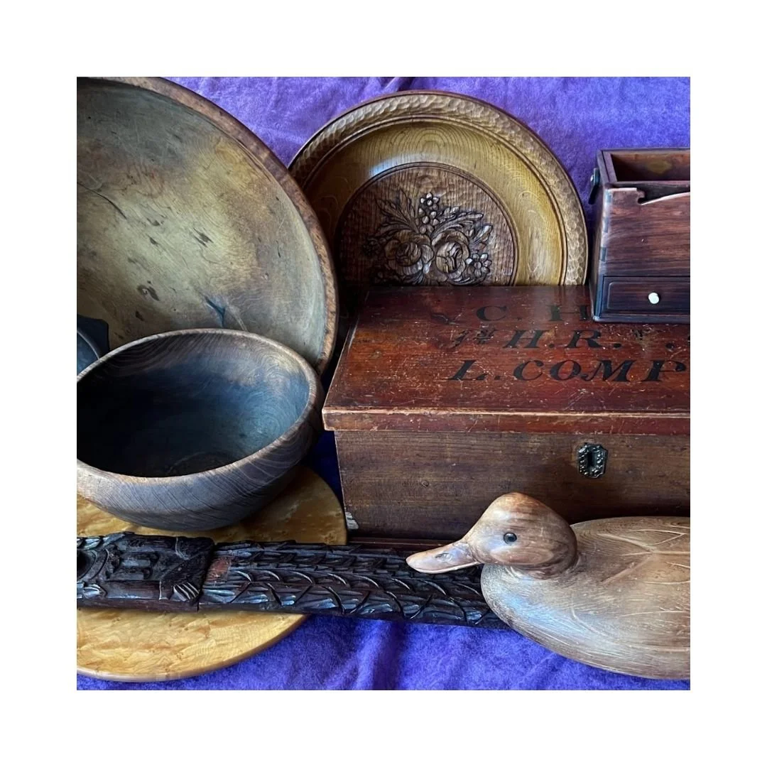 Jewelry, plus a curated collection of antique, vintage and folk art wooden objects.